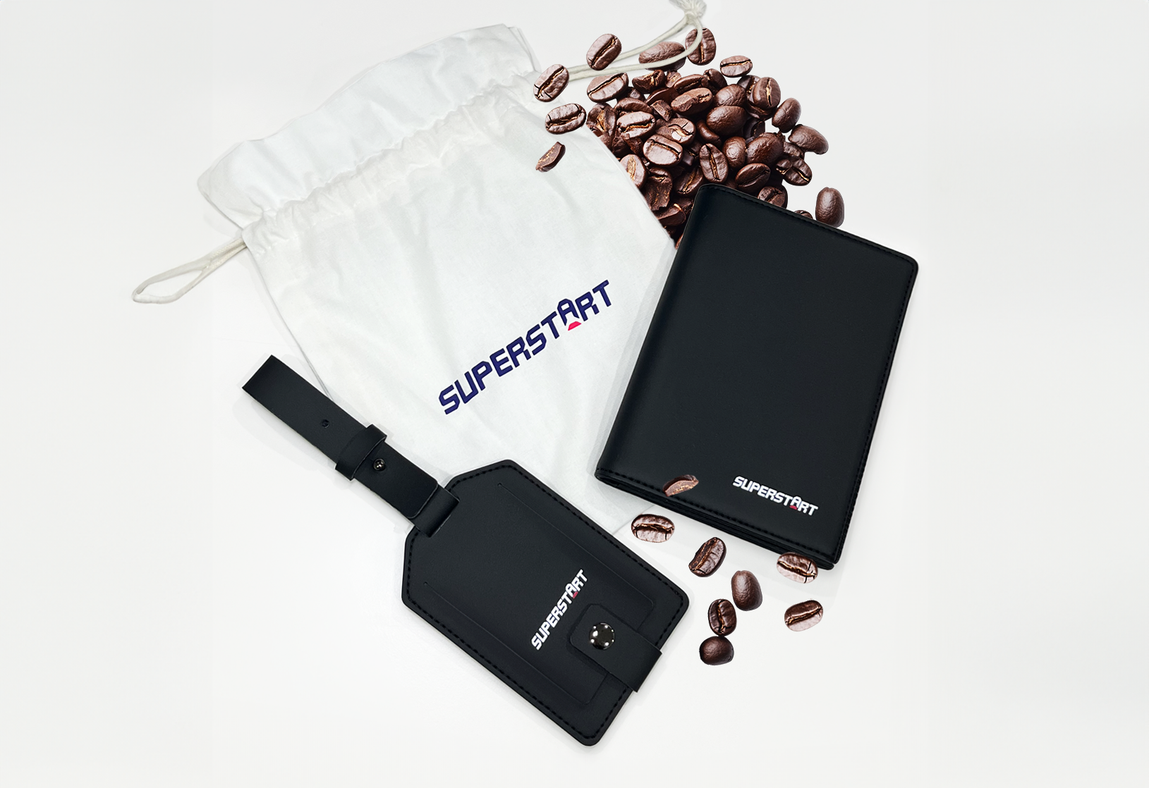 Passport cases and luggage tags made from coffee ground leather