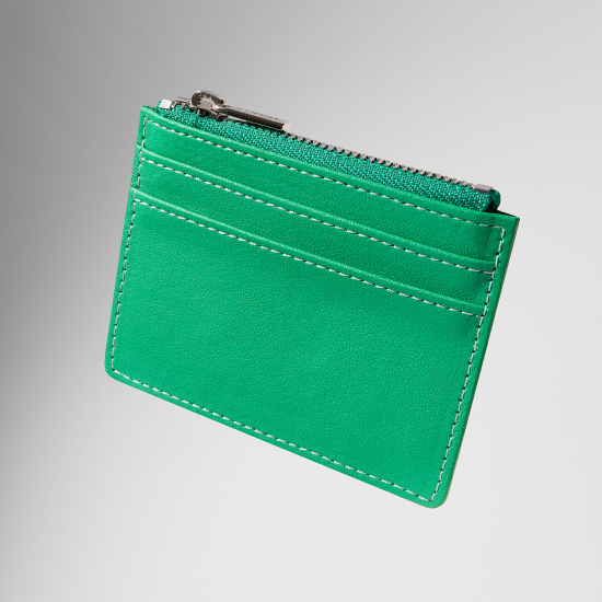 The Innisfree green tea leather card wallet was offered on April 22, Earth Day, as a complimentary gift with the purchase of the Green Tea Seed Serum Jumbo + Refill package.